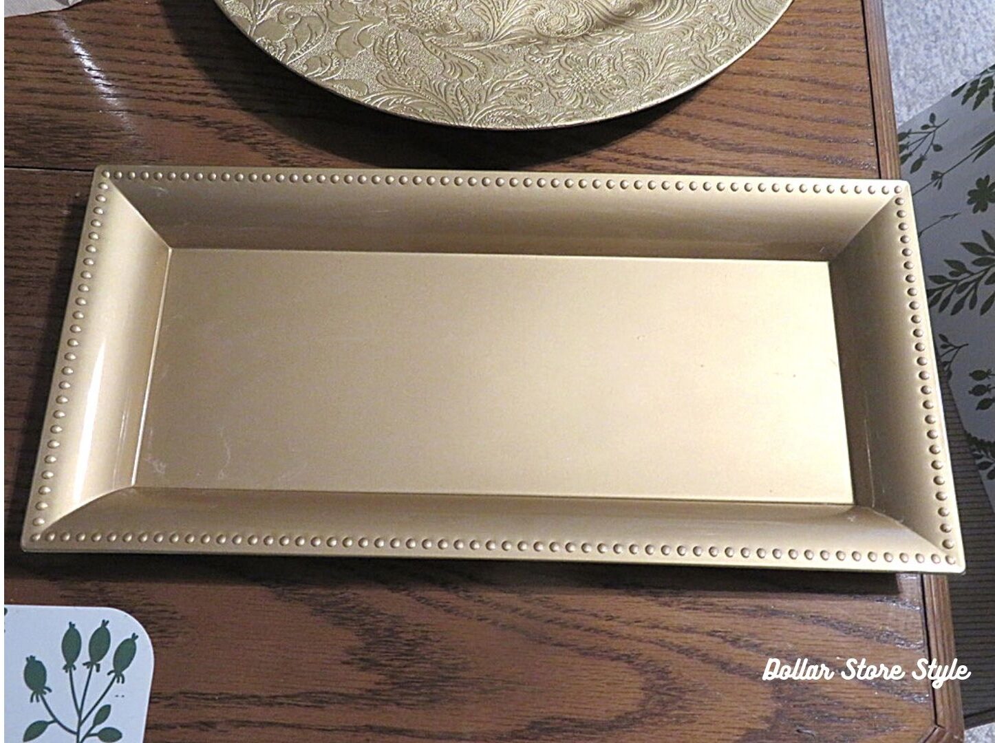 I love that you can find all manner of colours and patterns of chargers at Dollar Tree. They even have rectangular ones. I would have called them trays but, as they aren’t food safe, calling them chargers was probably a better call. And you can do so much more with them than using them to pretty up your place settings! Here are two ideas for creating beautiful home decor using Dollar Tree charger plates.