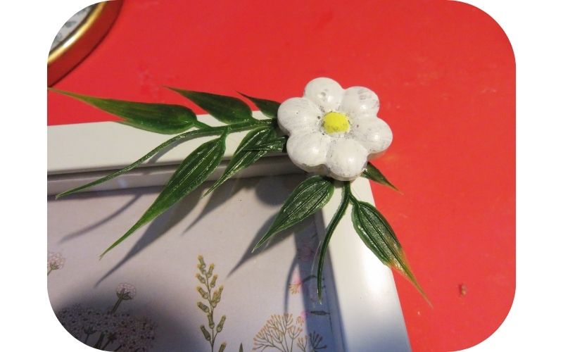 Then I added some greenery and one of the daisies to the top, right-hand side of the frame.