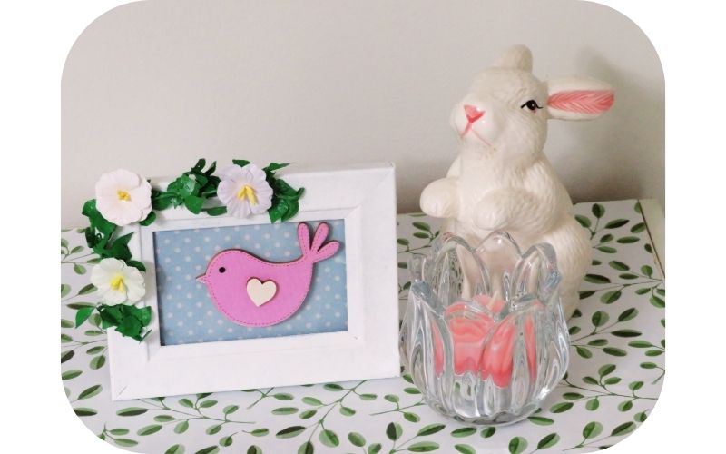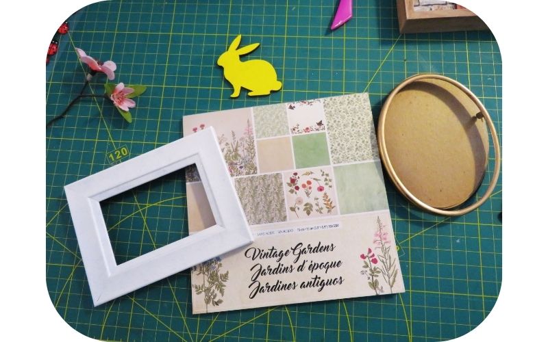 I have all shapes and sizes of frames but I’m drawn to the smaller ones. That and the new small vintage paper pad I recently bought, inspired the following four mini frame ideas for Spring and Easter.