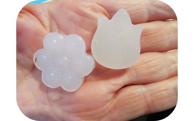 This is a silicone candy mold that I found at Dollarama. All I did was fill a few of the flower molds with hot glue. From experience, I have found that it’s better if you don’t fill the molds all the way to the top, but it’s important to make sure the hot glue fills in all around the edges.