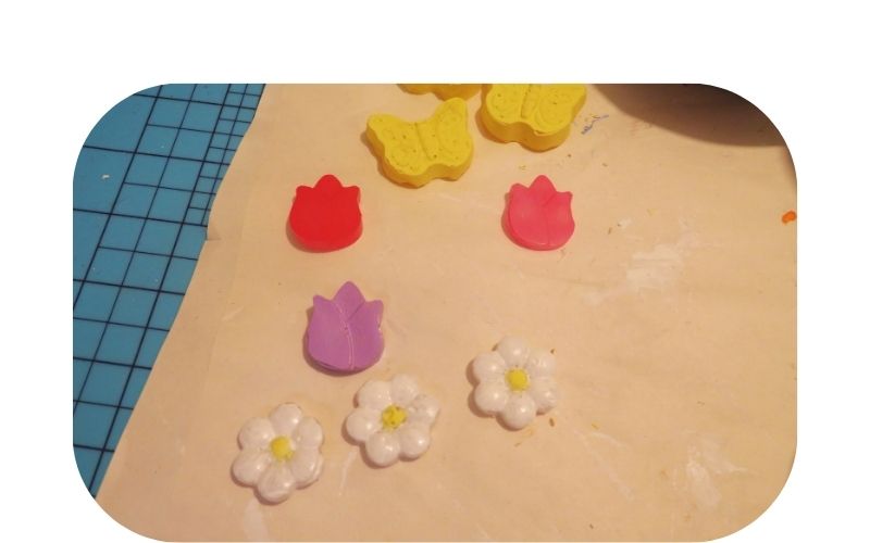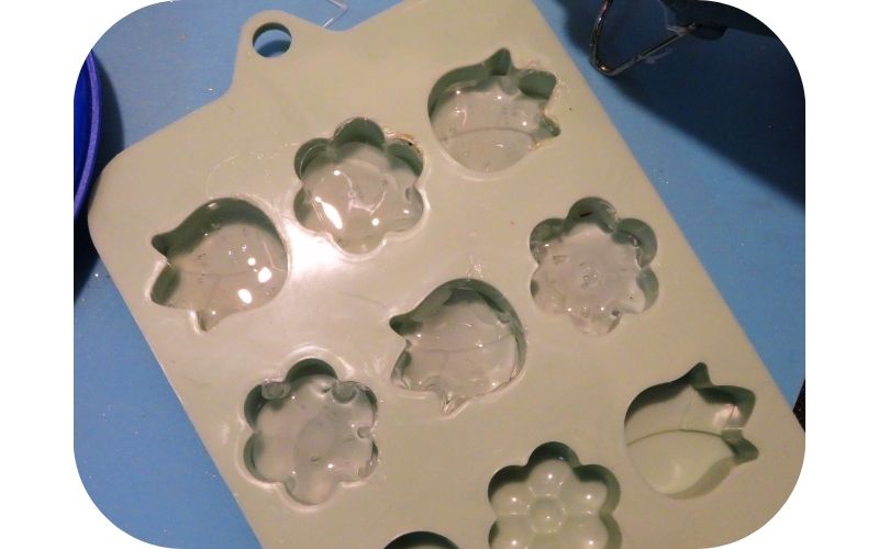 You can do this with air-dry clay, too. Shaped ice cube trays are also good for making mold but they’re not as flexible as the silicone candy molds.