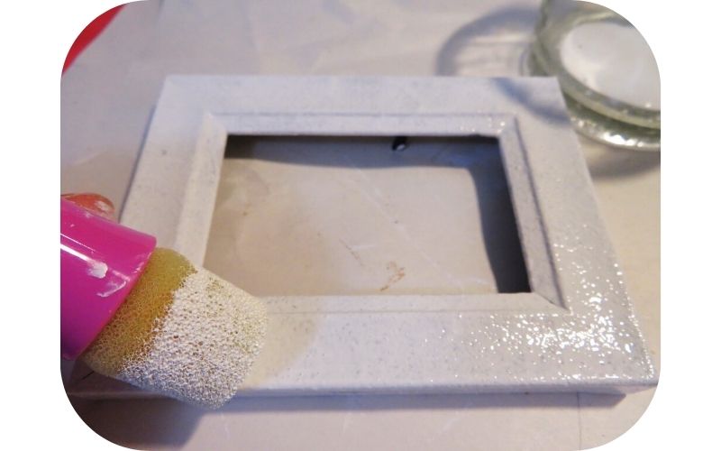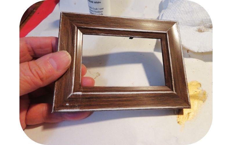 Because this frame wasn’t wood, I took out the backing and used a sanding block to roughen up the surface so the acrylic paint I was using would adhere to it.