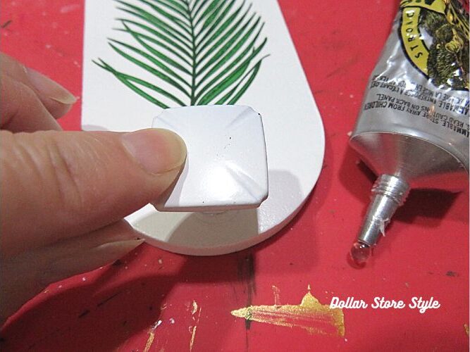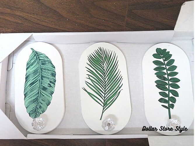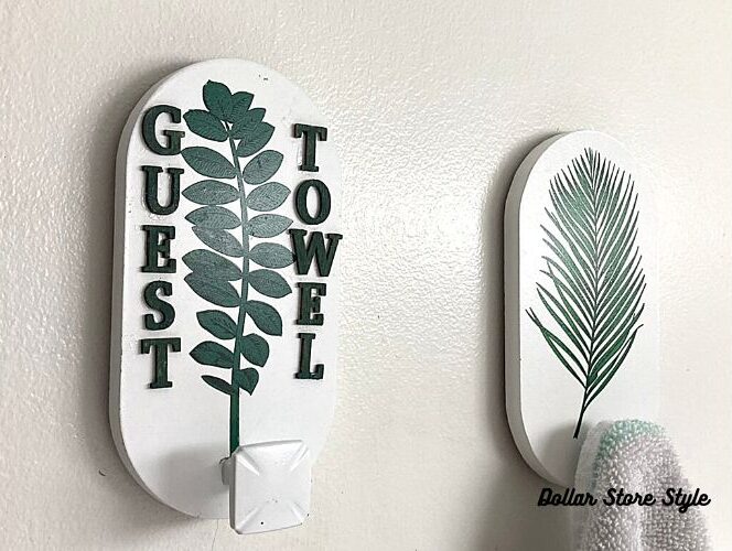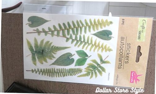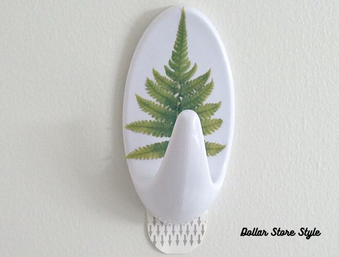The fern sticker on the plain hook came from this package I found at Dollar Tree. You could also paint these hooks a different colour, if you prefer.