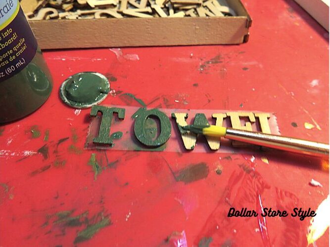 I had some green chalkboard paint in my stash that was a close match to the green in the leaf on the plaque and used that to paint the words “Guest” and “Towel.”