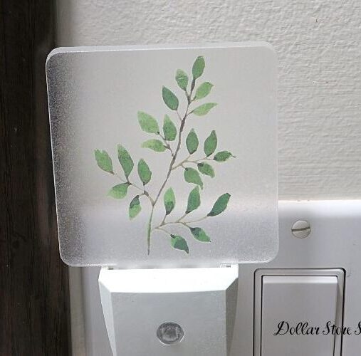 This plain night light also got a rub on sticker added to dress it up a bit, as well as match my botanical theme. Add a coat of Mod Podge to protect the transfers from moisture.